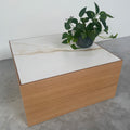 Solid Small sohvapöytä ilmentää hienostunutta yksinkertaisuutta, ajattomuutta ja funktionalisuutta. Pöydän marmori pinta on valmistettu laadukkaasta Keraamisesta laatasta joka luo ylellisen ilmeen ja on todella helppohoitoinen. Runko puolestaan on valmistettu aidosta viilulevystä, mikä lisää lämpöä ja luonnetta huoneeseen. Tämä sohvapöytä on täydellinen valinta niille, jotka arvostavat laadukasta muotoilua ja kestävyyttä. Tuo ripaus luksusta ja tyyliä kotiisi tällä upealla sohvapöydällä!